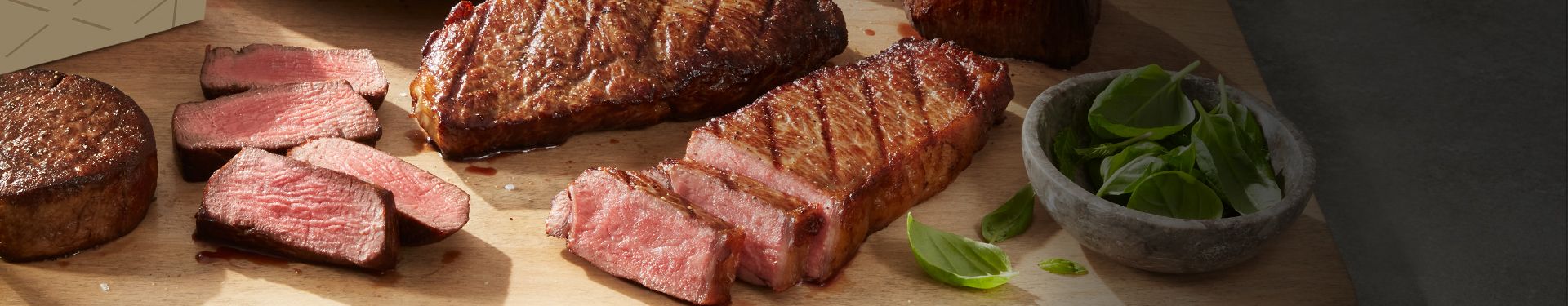 USDA Prime Steaks spread on cutting board.